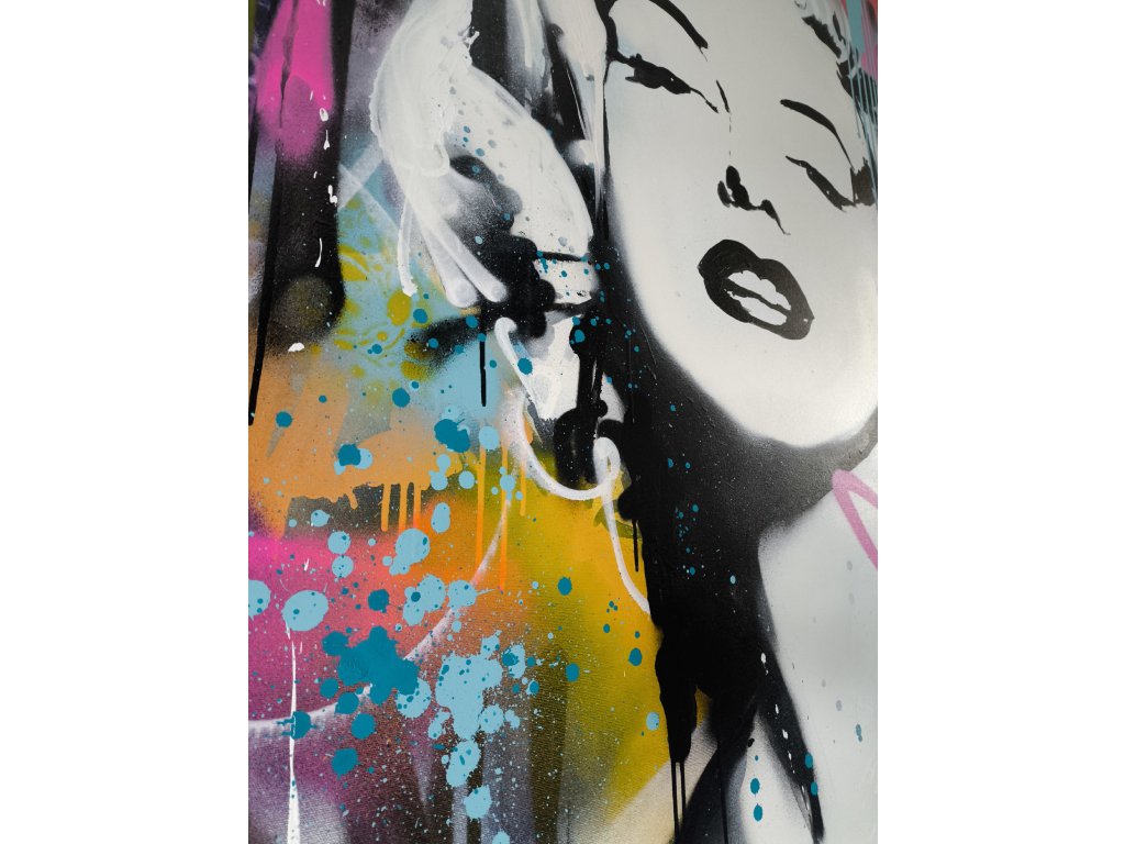 Ikonický portrét Marilyn Monroe v dravém Pop-Artovém provedení, které kombinuje nadčasový glamour s nekompromisní streetartovou energií. Obraz je velký 120 cm na 120 cm.